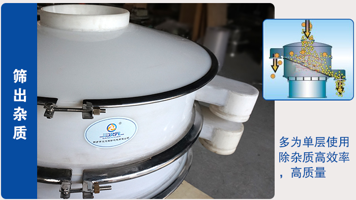 防腐蝕塑料振動(dòng)篩能把各類漿液中的非溶性大顆粒物質(zhì)迅速清除。多為單層使用。系列特殊設(shè)計(jì)的篩分過(guò)濾機(jī)每小時(shí)過(guò)濾量高達(dá)20立方。