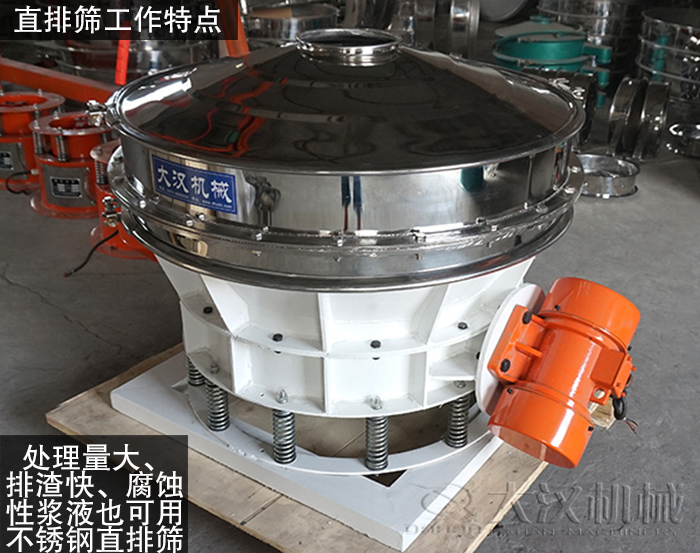 直排篩采用中頻電機、加高直排篩框體的設計,大大解決了漿液過濾過程中大能耗、產(chǎn)量小、效率低的難題。同時也解決了漿液處理過程中漿液外濺的問題,使物料處理量更大、排渣更快。