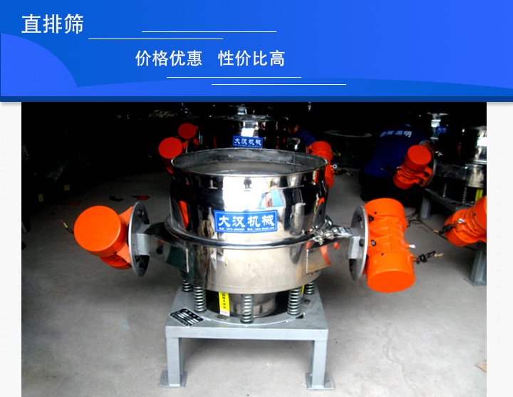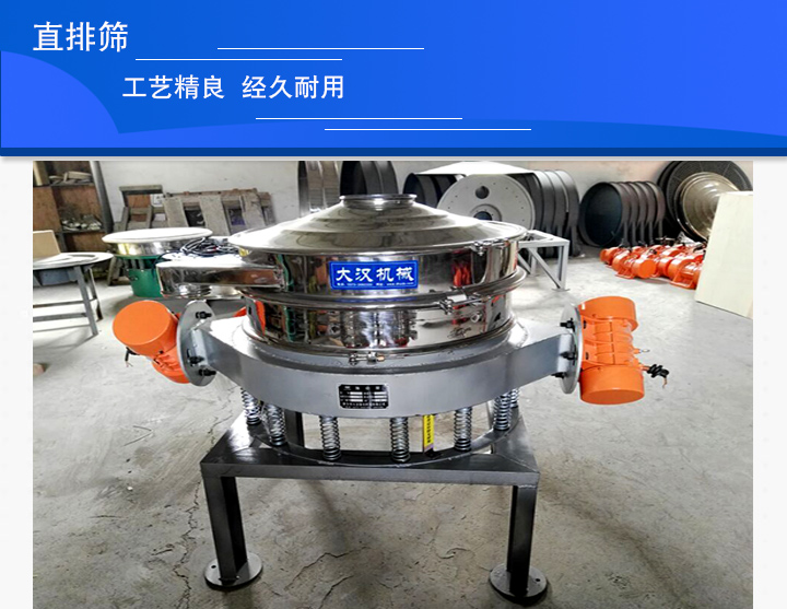 直排篩是一種多用途的,適用于快速大量西顆粒狀物料分級篩分設備,有單電機和雙電機兩種布置方式,其大的特點是物料在篩機中停留時間短,出料迅速,安裝工位低,多用于面粉、淀粉、洗衣粉、金屬粉、添加劑、化工粉料等行業的顆粒、粉狀的粗略篩分,其處理量大,易于產線結合。用戶在選購時一定要選對廠家,今天小編就為大家推薦一個直排篩廠家——大漢機械。