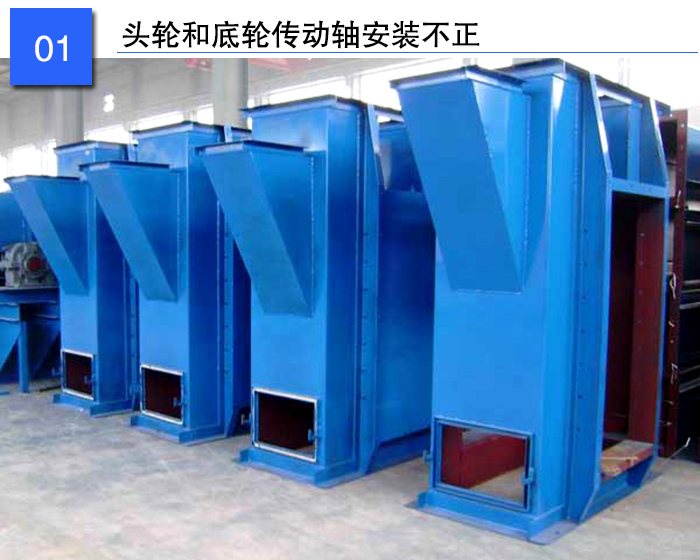 主要體現在以下幾個方面:一是頭輪和底輪的傳動軸在同一垂直平面內且不平行;二是兩傳動軸都安裝在水平位置且不在同一垂直平面內;三是兩傳動軸平行,在同一垂直平面內且不水平。這時,料斗帶跑偏,易引起料斗與機筒的撞擊、料斗帶的撕裂。
