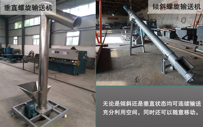 (2)傾斜螺旋輸送機(jī)尤其,是傾斜和垂直輸送時(shí)它可直接與其配套的設(shè)備聯(lián)接固定,不需要地基基礎(chǔ),充分利用空間。同時(shí)還可以隨意移動。