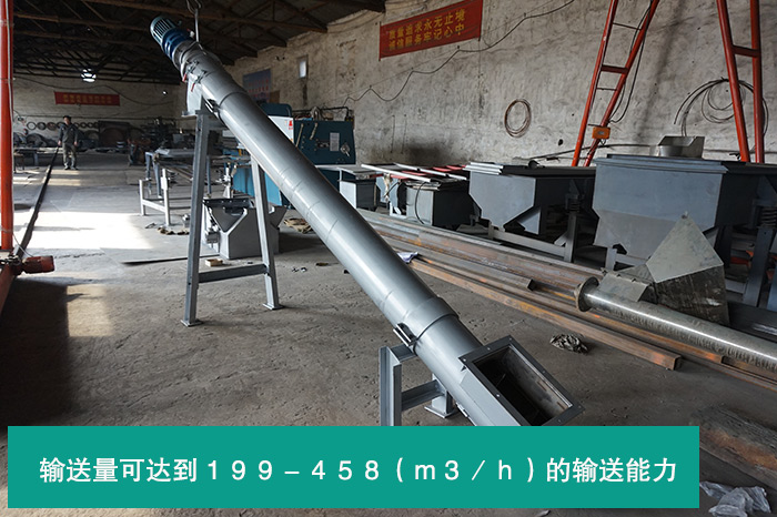 (2)傾斜螺旋輸送機(jī)的輸送量大,其輸送量可達(dá)到199-458(m3/h)的輸送能力,的同時(shí)螺旋輸送機(jī)的轉(zhuǎn)速也相對較高、其特別適用于傾斜和垂直輸送的輸送角度。