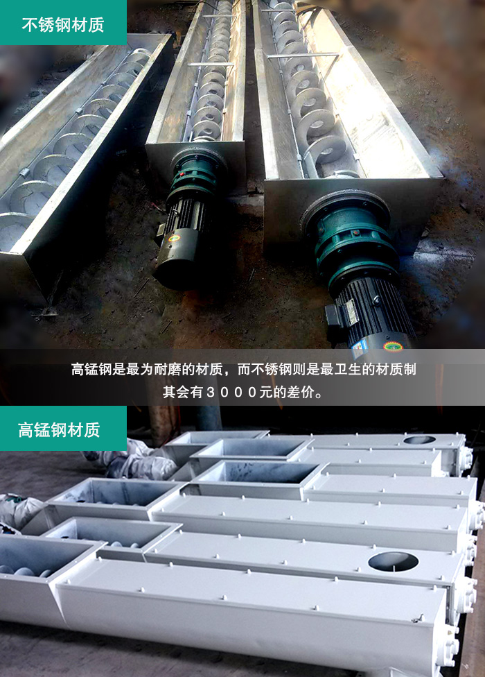其產品來自于新鄉(xiāng)大漢機械有限公司,新鄉(xiāng)大漢的產品在生產時使用了,市場上好的高錳鋼和不銹鋼材質而成,高錳鋼是為耐磨的材質,而不銹鋼則是衛(wèi)生的材質制。運用好材質才會有好質量。與此同時GL型螺旋輸送機就會有3000元的差價。