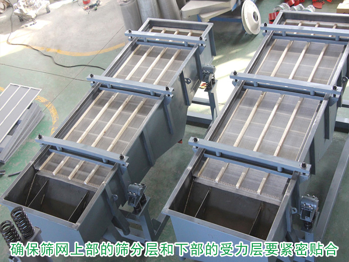 篩網(wǎng)一般有上部的篩分層和下部的受力層,要求這2層之間緊密貼合,如果篩網(wǎng)預張緊工藝差,當篩網(wǎng)底部的受力層繃緊時,篩分層沒有拉緊,那么做篩機工作時篩網(wǎng)上下顫動的距離過大,和篩框接觸部分不能有效壓緊,這也是引起篩網(wǎng)損壞過快的原因之一。